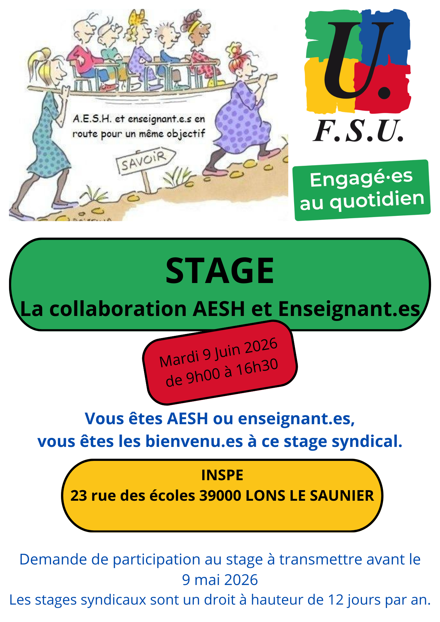 La FSU du Jura organise le mardi 9 juin un stage de formation syndicale sur le thème :